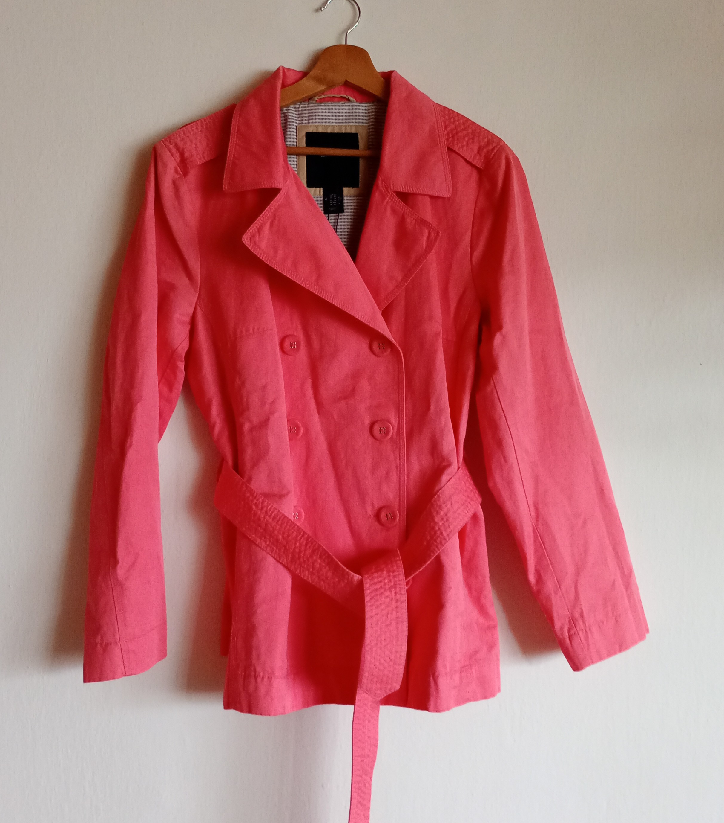Kabát- trenčkot na přechodné období značky Gant. V krásné barvě středně lososové a velikosti XL.